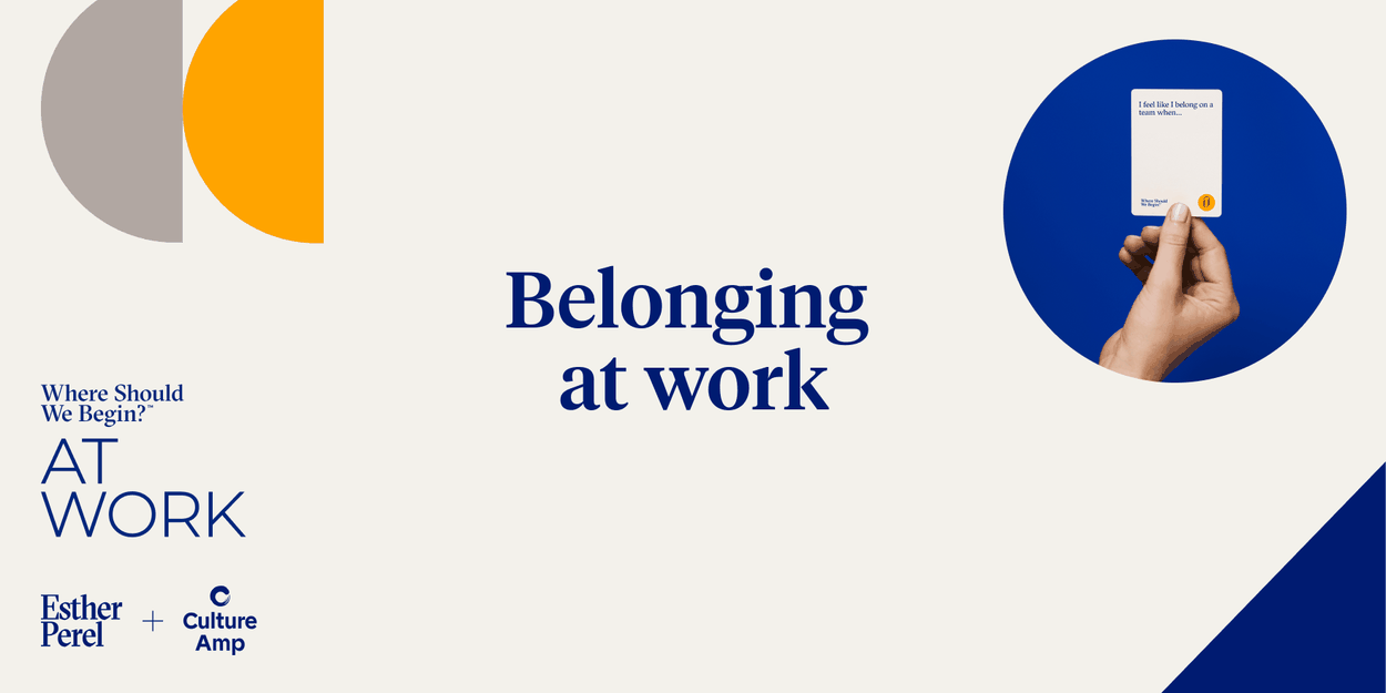 Wondering where your company and team stand when it comes to belonging? Esther Perel and Culture Amp’s conversation card prompts can help spark these conversations and bring belonging to life. Try the card game with your team to begin building stronger relationships – and a deeper sense of belonging – one conversation at a time.